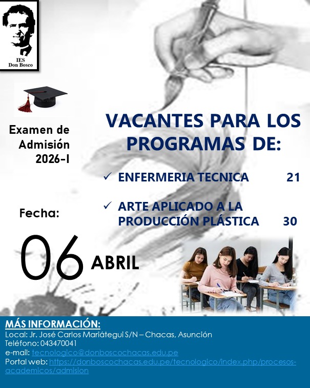 El Instituto Superior Tecnológico "Don Bosco" (IESTP) es un ente privado, legalmente reconocido por el Ministerio de Educación mediante RM 87-89. todo entre los egresados ​​del CEBA Don Bosco. Tiene más de 30 años de experiencia en la formación técnica.